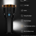 ★8 Lighting Models: ①Main Light Highlight②Main Light Lowlight③Main Light Flash④Main Light+Auxiliary WhiteLight⑤Auxiliary WhiteLight⑥Auxiliary YellowLight ⑦Side WhiteLight⑧Side YellowLight. It can service as a front flashlight or turn on the side light as a table light.