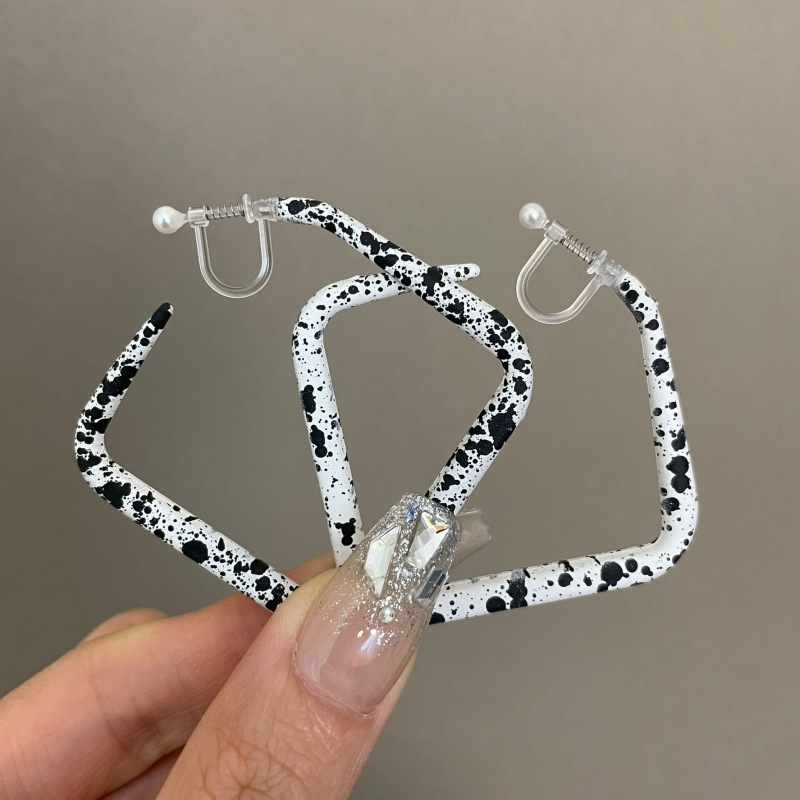 Add a bold and modern touch to your look with these square black & white splatter hoop earrings. Designed with a unique geometric shape and artistic paint-style finish, these earrings are perfect for everyday wear or special occasions.